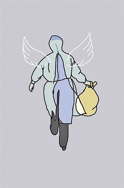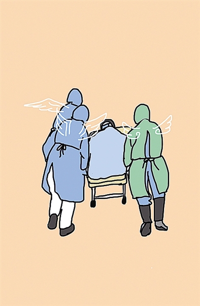 我们能记住你的背影,虽然看不清你的面庞。你的背影有一双天使的翅膀,带领患者战胜病魔,重新融入春天的阳光。(殷燕召)