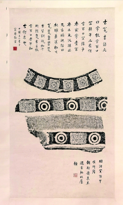 最后,借本次展览的标题,来谈谈古韵和今尚,古人收藏金石碑帖的着眼点是“铭文”而不是“图像”,体现了金石文化的终极追求——简素和古雅,金石碑帖往往只拓碑文,不拓碑额与碑侧的图案纹饰,画像砖石也极少传拓,《武氏祠画像石》《汉君车》《曹望僖》虽说是少数例外,但究其原因,还是画像题榜和文字题刻在焉。今人在没有铭文的、来路不明的画像石拓片上胡题乱写是缺乏金石文化的表现。