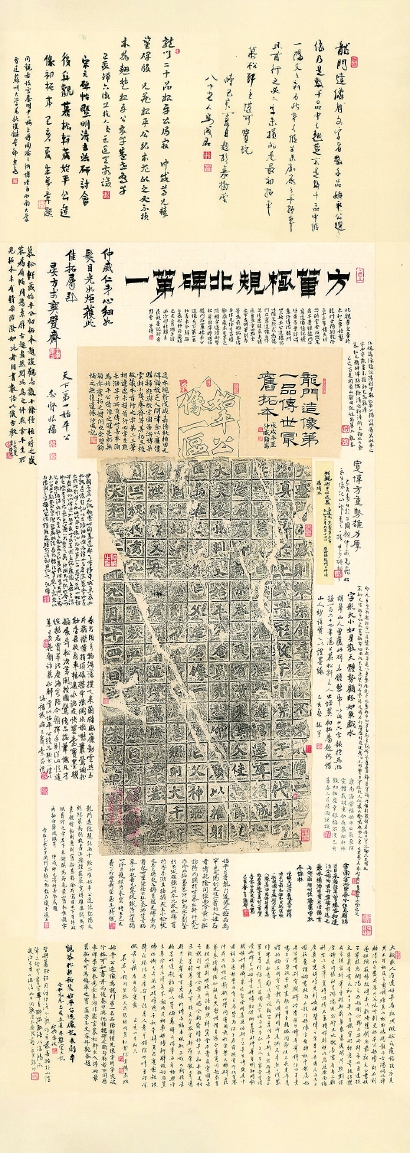 除历史和文献价值外,还要关注艺术和文物价值,它是碑帖收藏的理想和目标。中国历代金石数十万种,不是所有拓片都值得收藏,只有其中少数传世经典才配叫“碑帖”,要用艺术的眼光去辨别和取舍。凡是经典碑帖,多是古人喜闻乐见的,传拓数量最多,翻刻作伪也最多,收藏其中的正品和珍本,这才是历代碑帖收藏的正道。要用文物的眼光去鉴定和分析,不辨优劣的收藏是盲目的、不足取的。艺术品收藏讲究“物以稀为贵”,前文所言及的《大盂鼎》拓本,留有吴昌硕“金石朋友圈”题跋十余则,充分展现了金石拓片的珍贵和名家题跋的附加值。碑帖收藏还要补充一句“物以知为贵”,“知”就是人所共知,特指经典名品,那些抱残守缺、自以为是者,最终只能自欺欺人。
