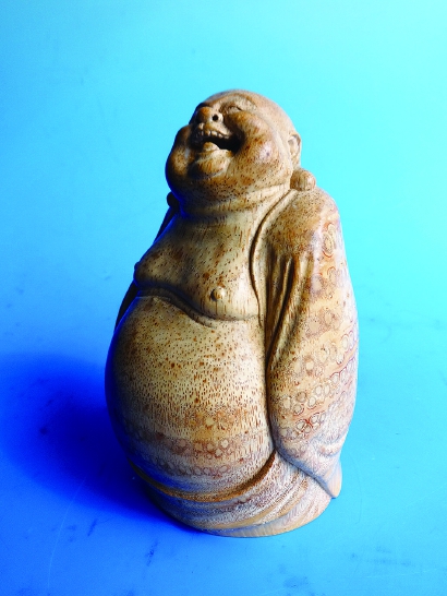 根雕艺术中有句行话:“依其形造其神,据其样显其魂”。哈哈弥勒竹根雕就是按照这个道理精心雕刻而成的。
