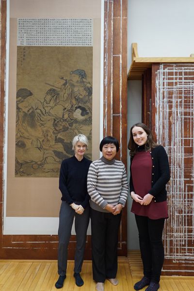 她还收了两个“洋弟子”,跟她一起在东方书画修复室修复中国古画。其中一个叫作瓦朗蒂娜的女弟子已经跟随了她15年,另一个叫作卡罗的女弟子也跟她学习了9年。“她们从裁纸、打糨糊、练棕刷刷墙开始学习,天天练习,直到手上有了老茧,手腕有了软硬劲道,才算完成基本功。她们现在还不能算出师,我希望再带她们几年,能让她们把中国传统的修复方式学成。”邱锦仙说。