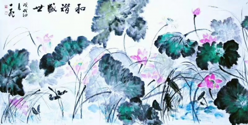 北京美术家协会会员、北京国画艺术家协会会员部副主任郝加勇作品《彩墨荷花》