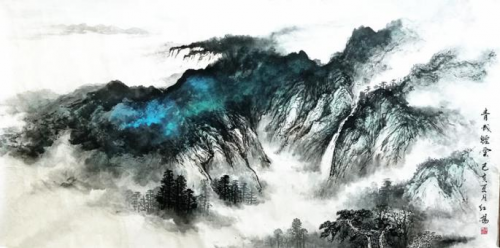 中国华夏万里行书画家协会会员、广州市书画艺术交流协会副会长彭红扬作品《青城烟云》