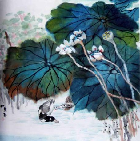 国家一级美术师、山东省美术家协会会员李有成作品《花光艳映水云酣》