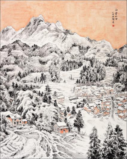 国家一级美术师、中华国际书画院高级书画师冯文亮作品《山里人家》