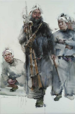中国美术家协会会员、湖南省水彩画学会理事申朝晖作品《岜沙故事》