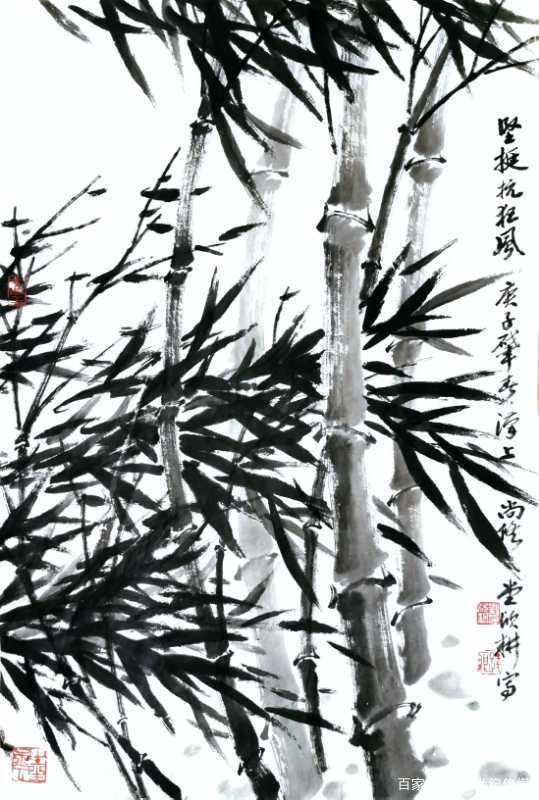 国画《坚挺抗狂风》