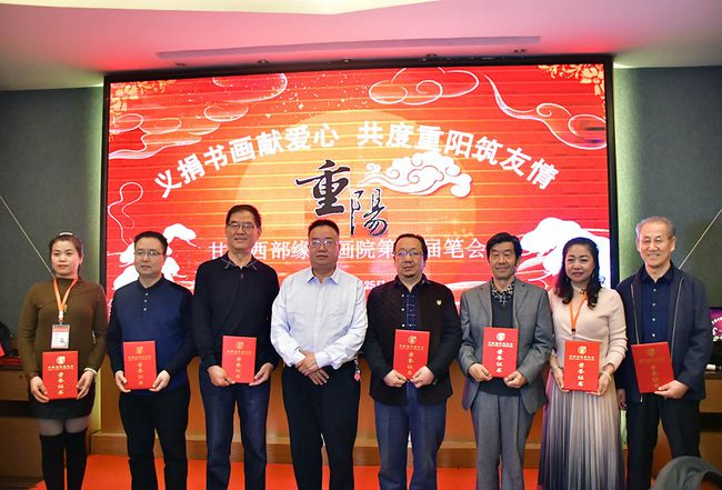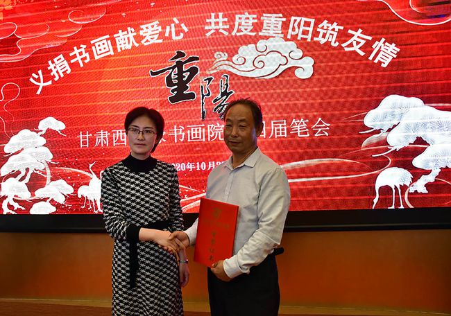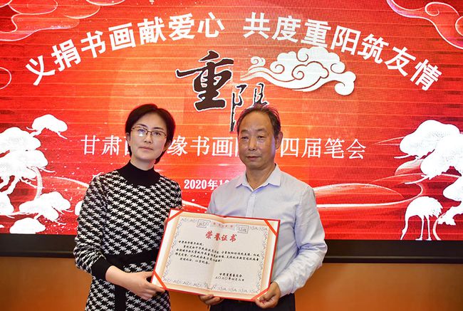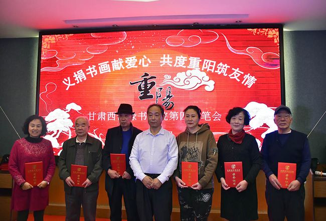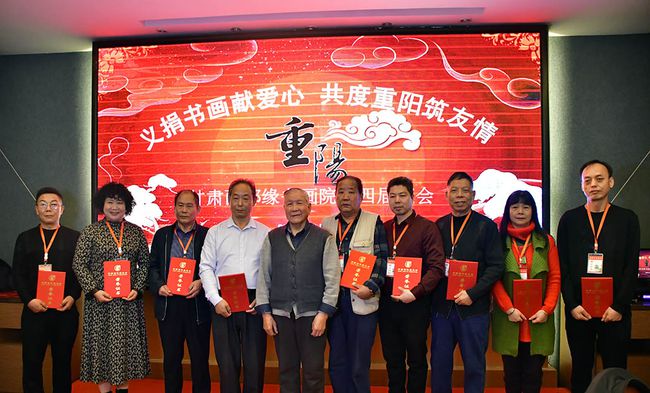 中国甘肃在线兰州讯(赵小春报道)最美不过夕阳红,重阳佳节乐彤彤。2020年10月25日上午,为欢庆重阳节到来,为大力弘扬中华民族尊老敬老的传统美德,在兰州市城关区酒泉南路菜根香酒店北三楼,举办甘肃西部缘书画院第四届“义捐书画献爱心,共度重阳筑友情”笔会活动。并为义捐书画作品的艺术家颁发荣誉证书,翰墨结缘,共度重阳佳节。