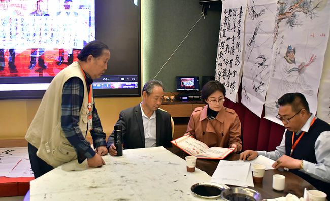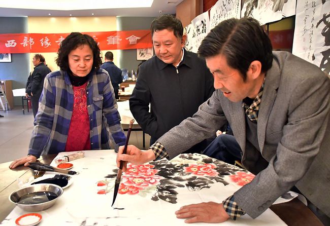 本次笔会是甘肃西部缘书画院倡仪,为抗疫义捐书画作品的老师颁发荣誉证书的欢度重阳节而举办的笔会活动,有70多位艺术家和嘉宾参加了今天的活动,甘肃省慈善总会宣传部和甘肃省毛体书法艺术研究会的领导给义捐书画的艺术家颁发了荣誉证书。本次活动受到了甘肃铁建实业有限公司的大力支持。