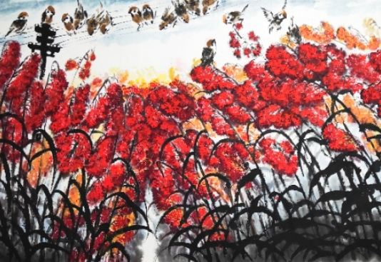 浑厚华滋的中国画印象,一般说的是山水特点。在这里转迁过来形容崔国安的花鸟作品,看似有点儿不恰当。但是观赏崔国安的花鸟作品,其浑厚华滋的意象不输山水的磅礴,所以干脆就用浑厚华滋来描述对他的花鸟观感。