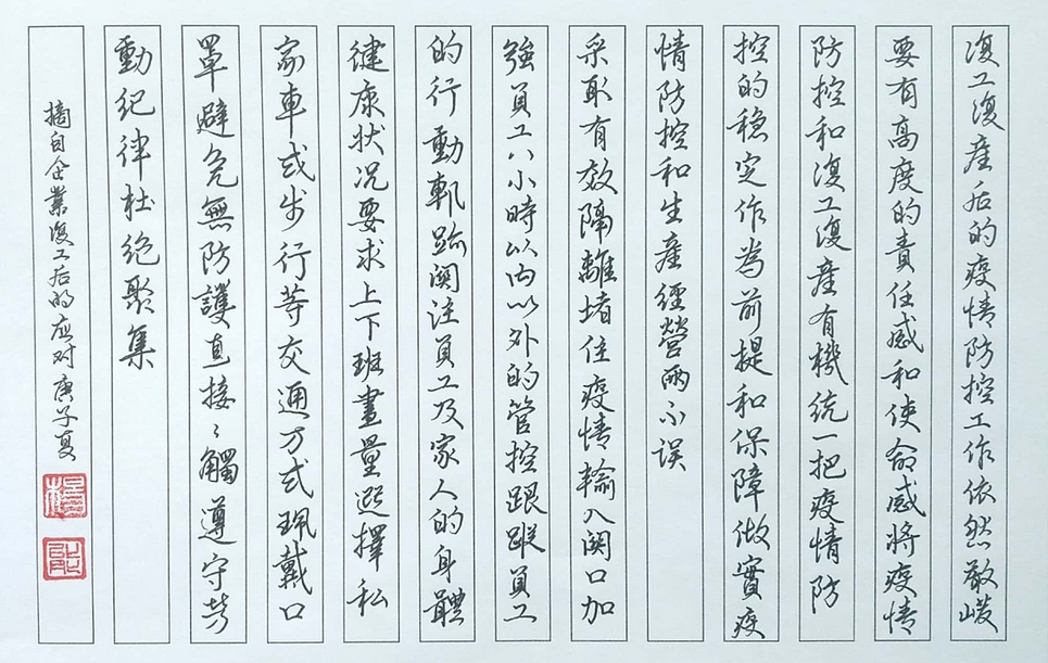 “众志成城 抗击疫情 劳动闪亮”硬笔书法作品选(二)