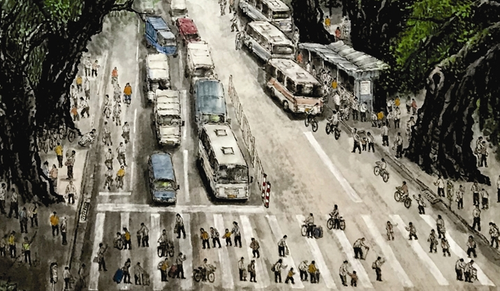 石碁镇土生土长的乡土画家邓子翔,继推出引起众多美术爱好者关注的“石碁八景”系列之后,又把笔触伸向街头巷尾,其中的“我的城市”系列尤为引人注目。
