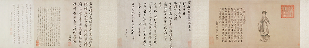 临近尾声,我们不妨再聊一个话题:苏轼到底长什么样子?这是一个有答案的事情,因为北宋画家乔仲常《后赤壁赋》真迹传世,此画卷中有苏轼的清晰形象,考虑到乔仲常是李公麟的亲戚,因此,这一卷《后赤壁赋》中的苏轼,一定非常接近苏轼相貌,就是一个个子不高、神情潇洒的微胖男子。