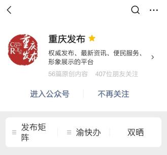 关注重庆发布微信公众号