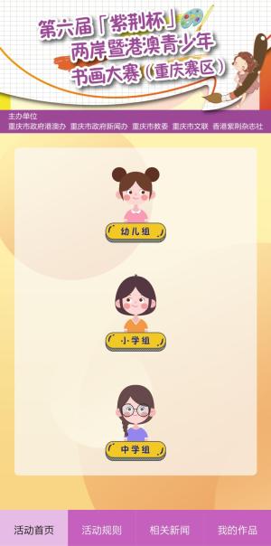 据组委会香港紫荆杂志社重庆站主任仇漩介绍,第六届“紫荆杯”两岸暨港澳青少年书画大赛(重庆赛区)自7月15日接受报名开始,截至9月23日渝北分赛区初赛作品评审结束,共收到作品上万件,经12个分赛区初评选出3000多件作品,9月24日至10日8日在重庆发布微信公众号、上游新闻APP、iChongqing爱重庆、光明重庆、智汇八方微信公众号开展网络专题展示,供市民观赏点赞,决出最佳网络人气奖。