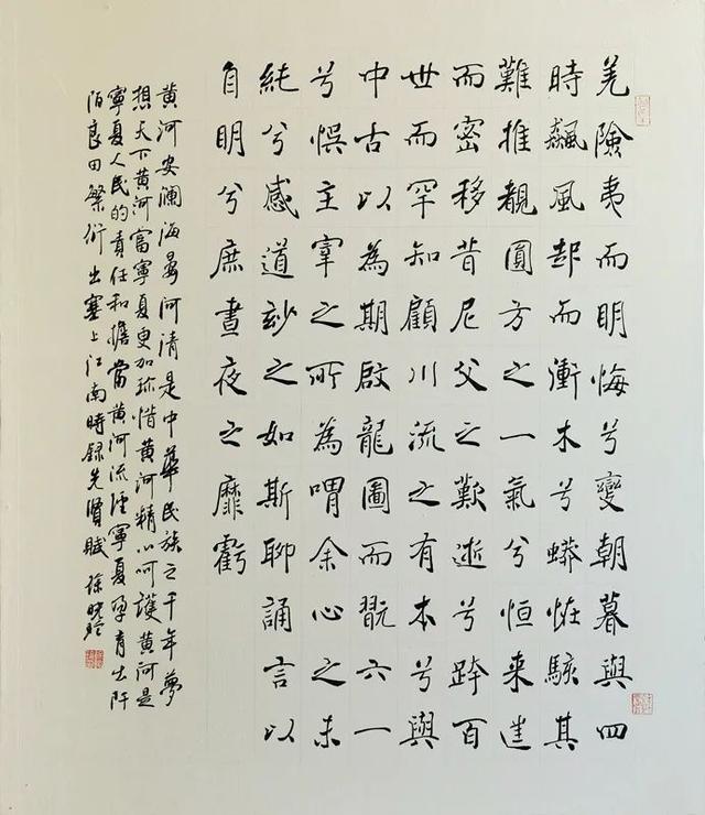 黄河是中华民族的母亲河,是中华民族和中华文明赖以生存发展的宝贵资源,孕育了中华民族五千多年的血脉。根植于黄河流域的黄河文化,是中华文明的重要组成部分,是中华民族的根和魂。也堪为中华文明中最具代表性的主体文化,在中国乃至世界文明的浩瀚星空中都留下浓墨重彩的印记。自古以来,黄河水滋养着宁夏这片美丽富饶的土地,养育着勤劳无畏的人民,培育着厚重深沉的文化。黄河文化经久不息、历久弥新。此次展览紧扣黄河文化主题,以精品化创作为目标,广泛组织动员宁夏的中国书协会员深入挖掘黄河文化、弘扬黄河文化,充分体现出文艺工作者的时代担当,努力为建设黄河流域生态保护和高质量发展先行区汇聚昂扬的精神力量。