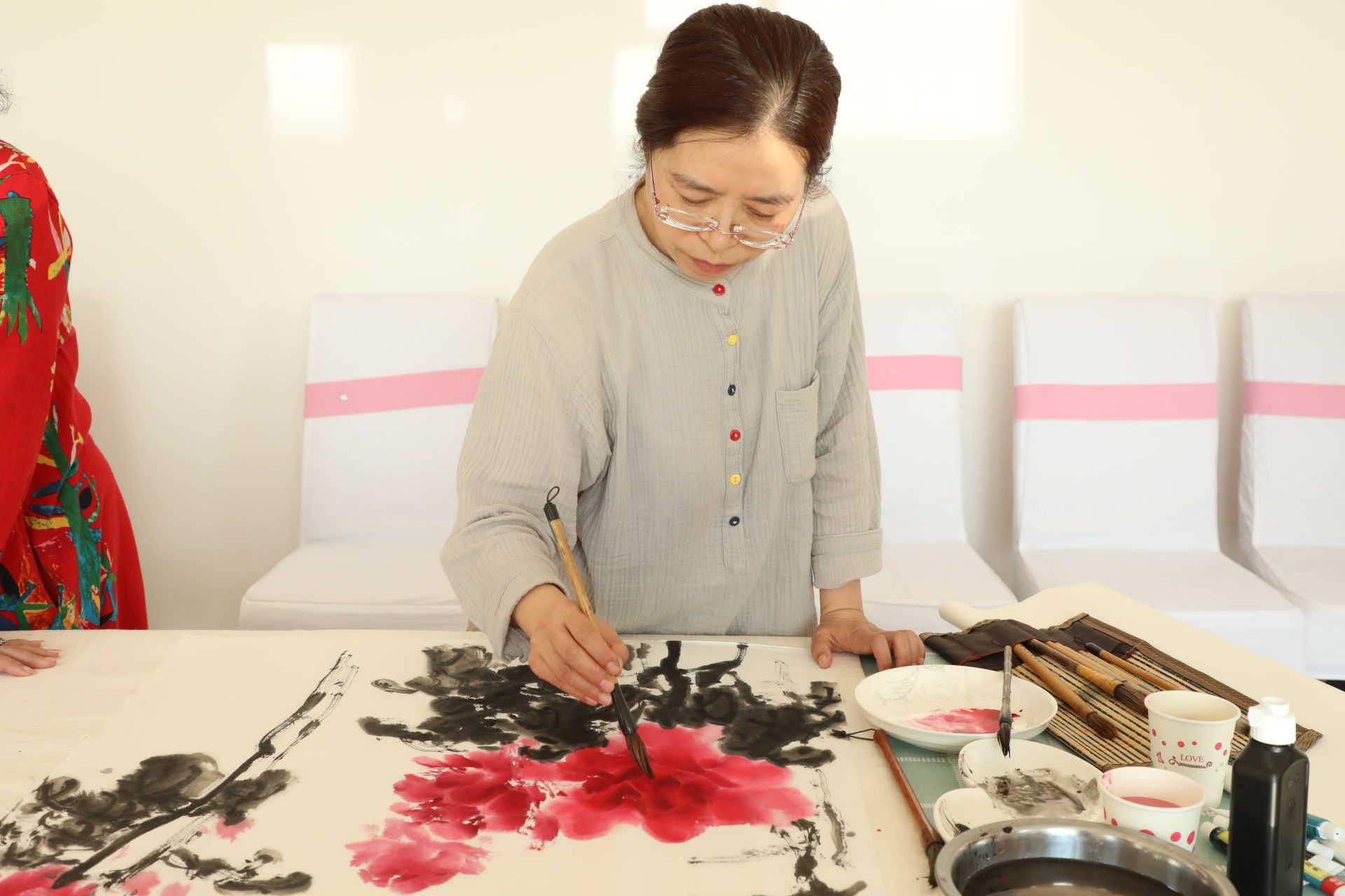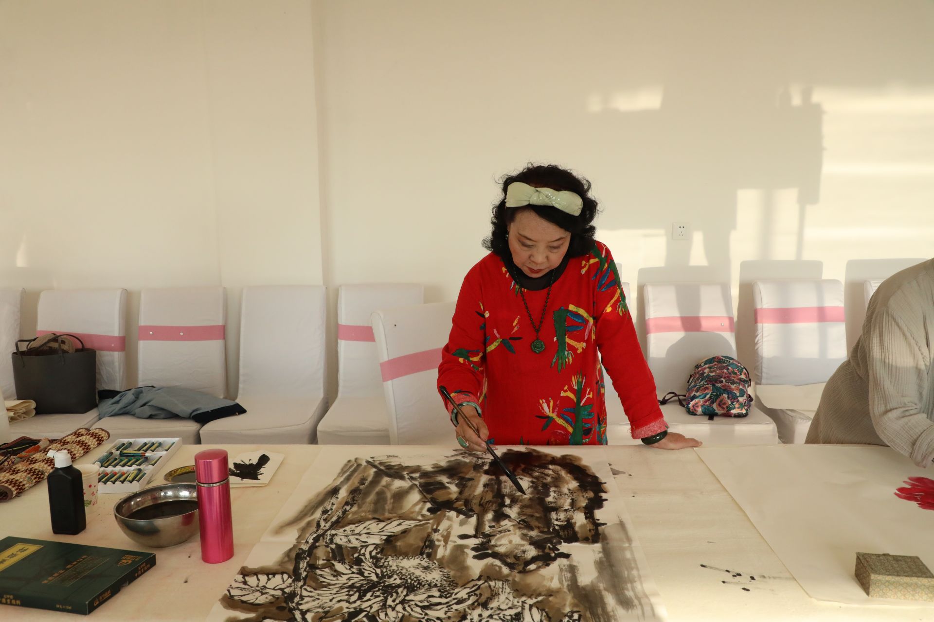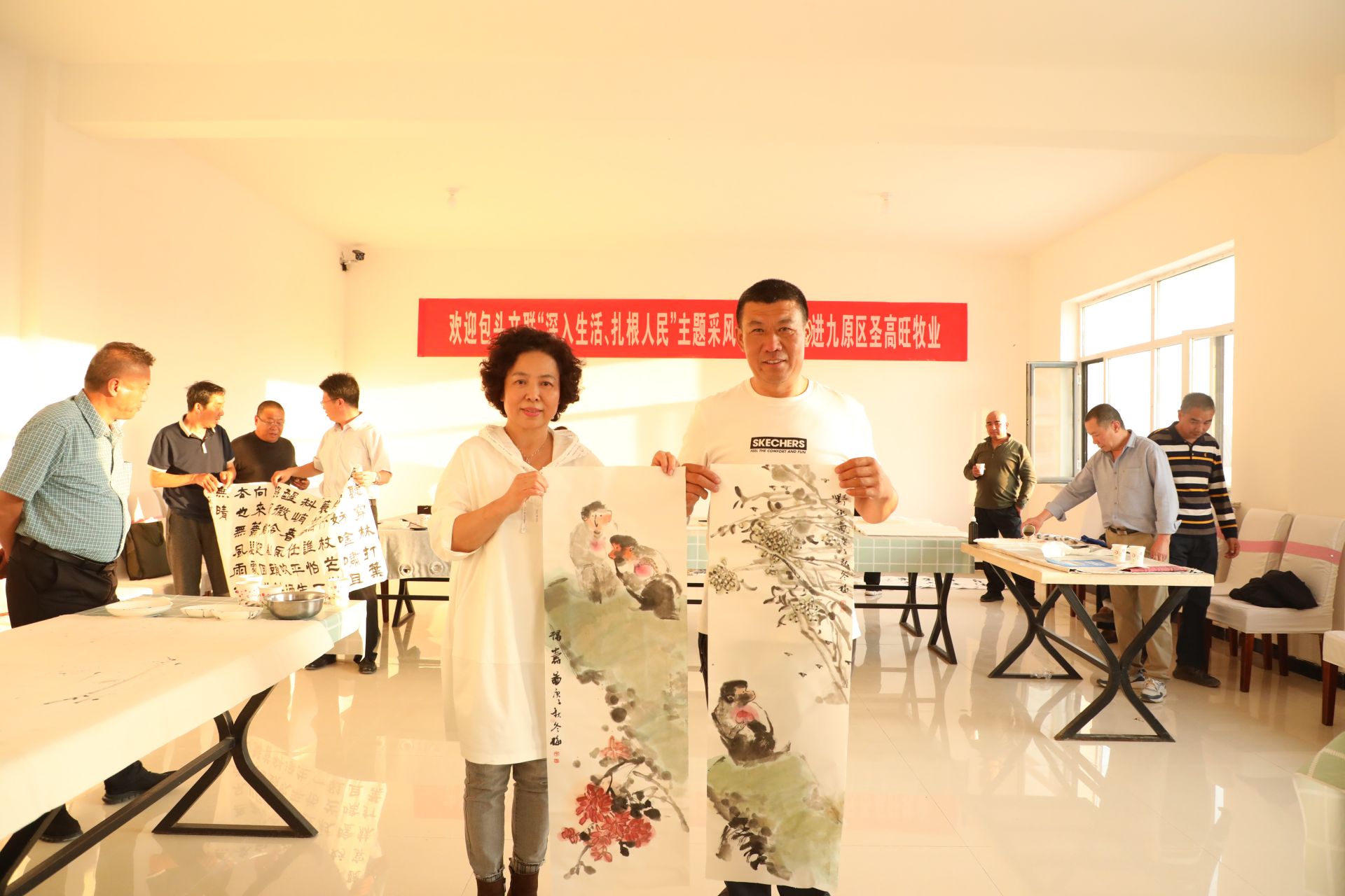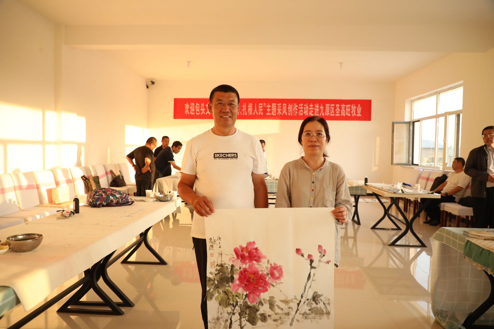 采风活动还在包头市圣高旺牧业有限责任公司举办了采风创作笔会。现场,艺术家们挥毫泼墨、题字作画、交流经验,一张张遒劲有力的书法作品、一幅幅精美别致的画作得到了企业职工和现场观众的点赞。
