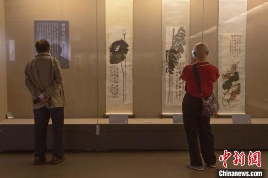 中新网南昌10月2日电 (李韵涵)“置身在这样的展览中,仿佛感受到了两位艺术家的‘时空对话’。”10月2日,在南昌八大山人纪念馆,市民周俊对“浑无斧凿痕·对话齐白石——北京画院典藏作品展”赞叹不已。