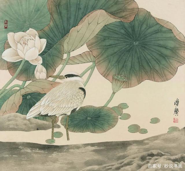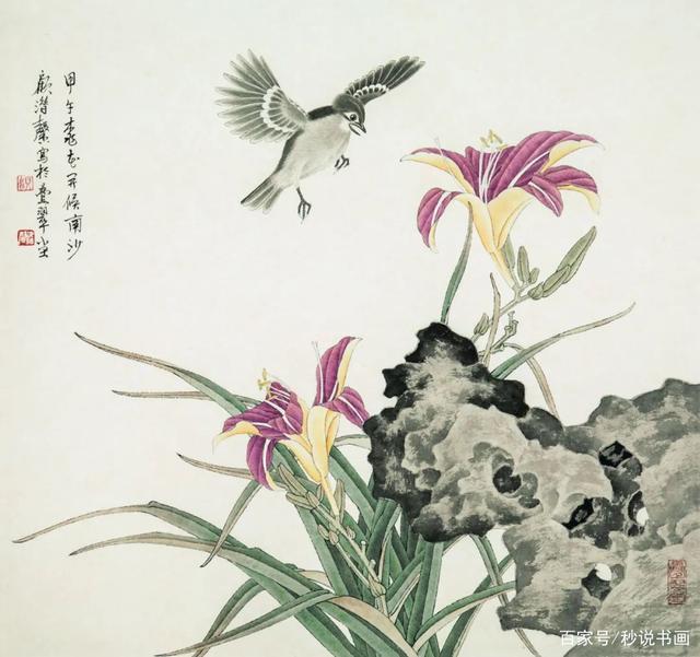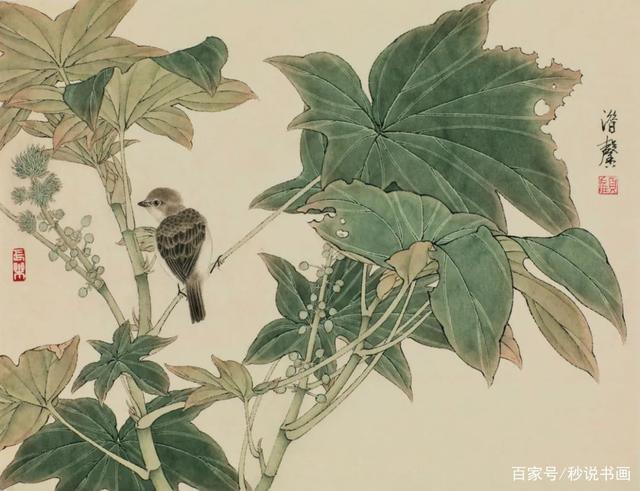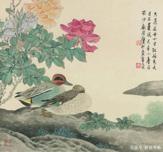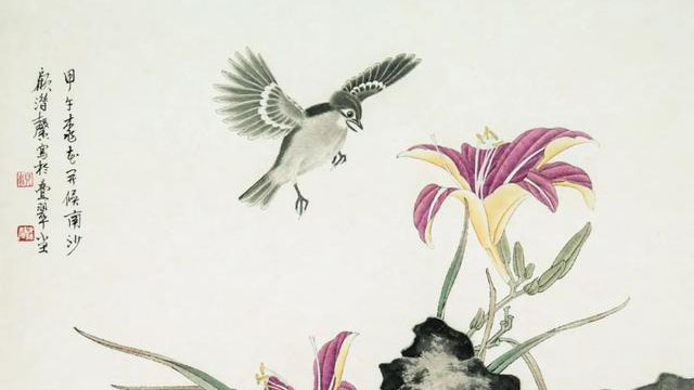 在顾潜馨作品中,我们可以品味浓厚的古意,即高雅的气韵和有深厚的传统功力。其立意、为象以至笔墨、赋彩,都极华丽而典雅。再看他的笔墨功夫,线条精到挺劲,变化多端,描写物象时一笔不苟而又放松飘逸,充满了生命的律动,这正是谢赫所说的“骨法用笔”,笔笔刚健而有活力。在他的画上不但有黄筌的“富贵”,也有徐熙的“野逸”,精工而又潇洒放逸。此外,崔白、李迪、林良、吕纪以及恽南田的“没骨法”等大家的韵味也时有流露,真可谓古意盎然。
