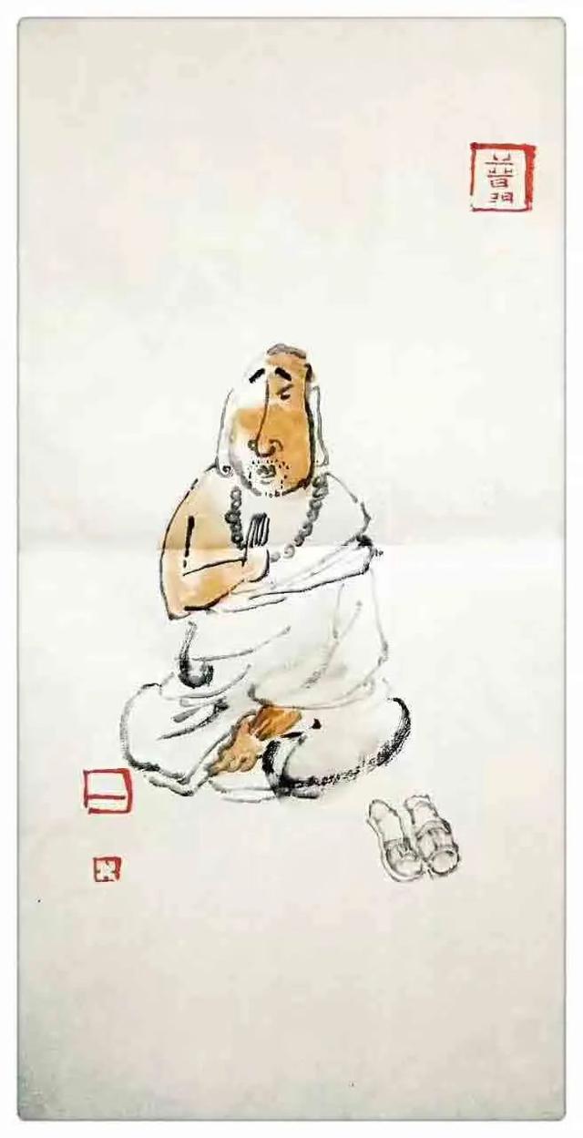 一年后演一法师再次提笔,绘画风格已经有了质的飞跃。在没有出家之前,绘画题材和技法受多元化的影响,过于注重技法和创新,无论是画具象还是抽象的,都有一种标榜自己和别人不一样的念头。画画时顾虑多,总是陷在技法的要素里。
