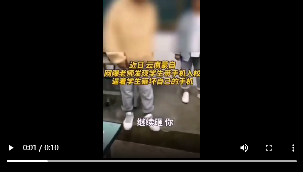 原标题 云南一中学老师勒令学生自行砸手机:已停课接受调查