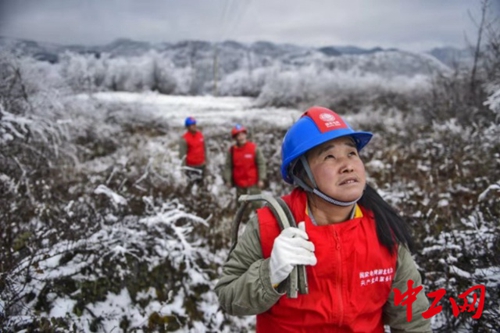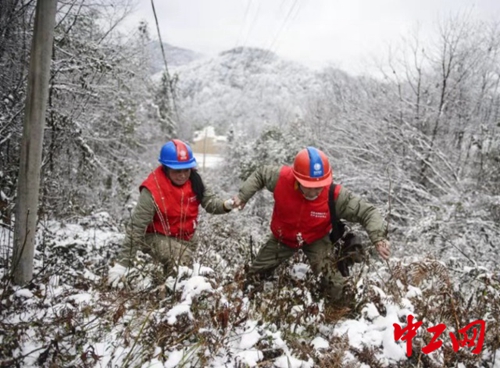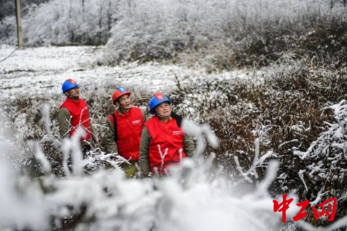 不让大山深处的任何人家摸黑过冬,这是湖北省鹤峰县电力公司共产党员巡线队多年来的一个不变承诺。12月5日,雪出如令到,鹤峰县电力抢修人员在黍子村冒雪巡视10千伏中岩线。