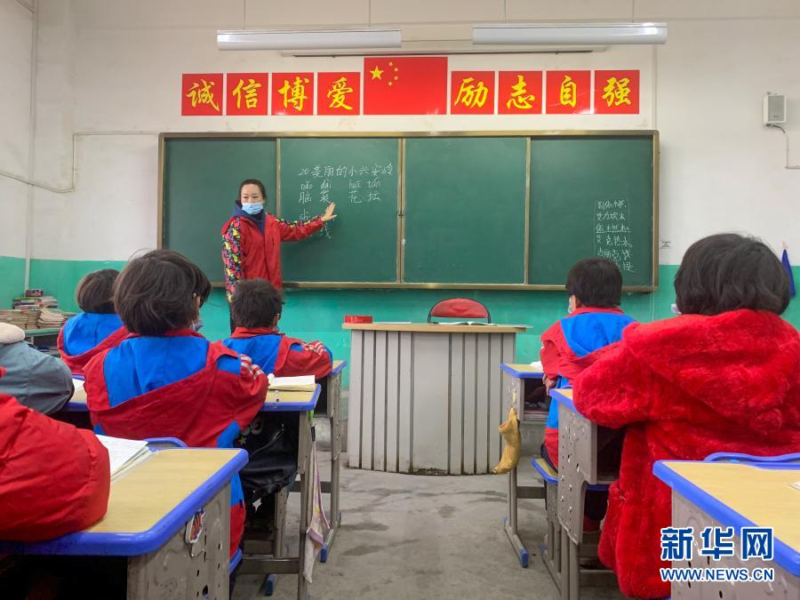 11月19日,在新疆阿克苏市喀拉塔勒镇尤喀克博孜其小学,教师耿琴在教室里上课。新华社发