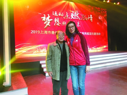 徐阿根(左)与排球名将桂超然