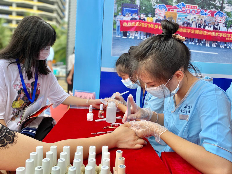 美甲技能学生为市民提供免费美甲。李浩蓉摄