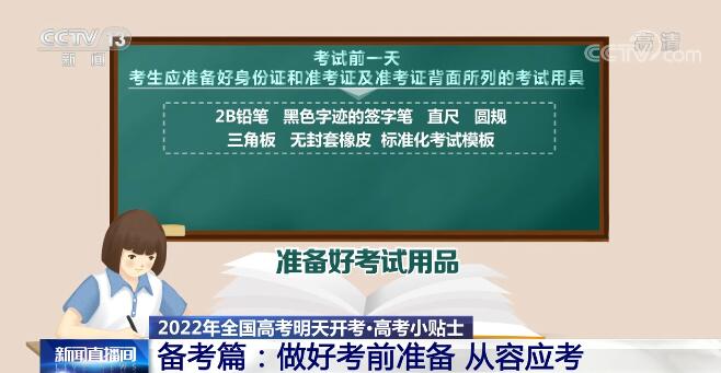 央视网消息: 那么在高考前,考生需要做好哪些准备,还有哪些注意事项,我们也进行了梳理。