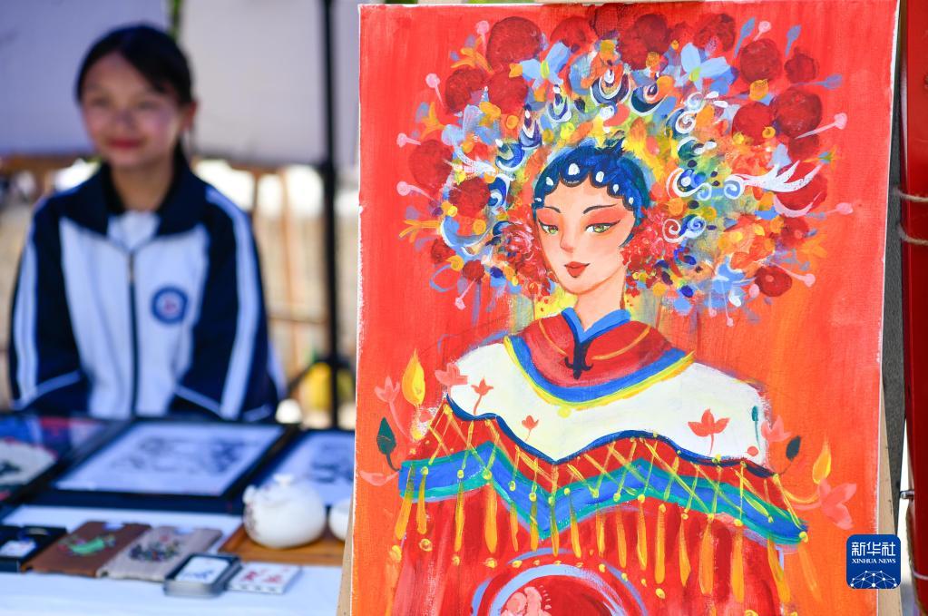 6月26日,贵州省龙里县中等职业学校的学生在展示插画作品。