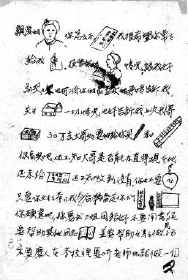 在人大博物馆里,有一组家书格外引人注意,与其他信件满是文字不同,这组家书更像是一幅幅连环画:钢笔、房子、口风琴这些字眼都被生动的图画所代替,就算不怎么识字的孩童也能读懂。的确,这些家书就是写给孩童的。书信的作者叫李征明,收信人是他刚上小学的妹妹。