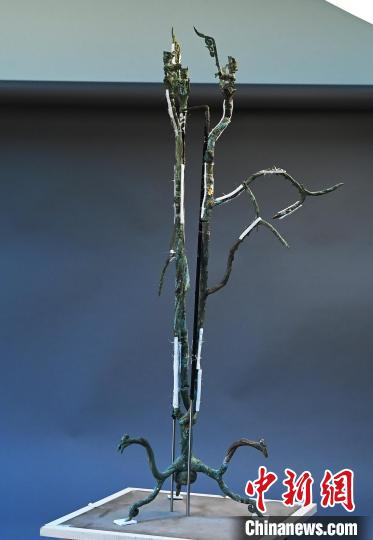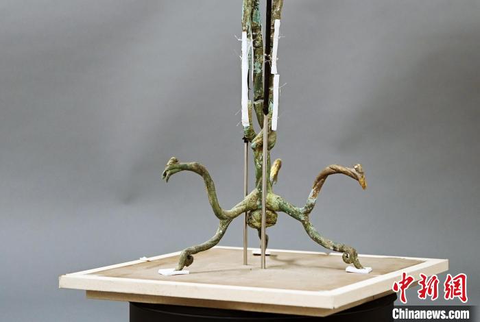 “从70多件残件修复到现在这种程度,整体来说比较顺利,因为修复线索比较鲜明。”余健告诉记者,3号青铜神树和1号青铜神树是完全不同的型制,其树枝呈麻花形,主树干直径约1厘米,因此在出土的大量青铜残件中可以比较轻松地找出形状、大小差不多的部件。“最后如有残缺的部分,应该会采用传统的方法,通过以铜补铜的方式完成修复。”