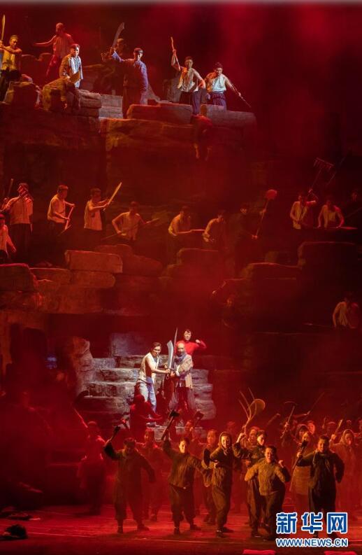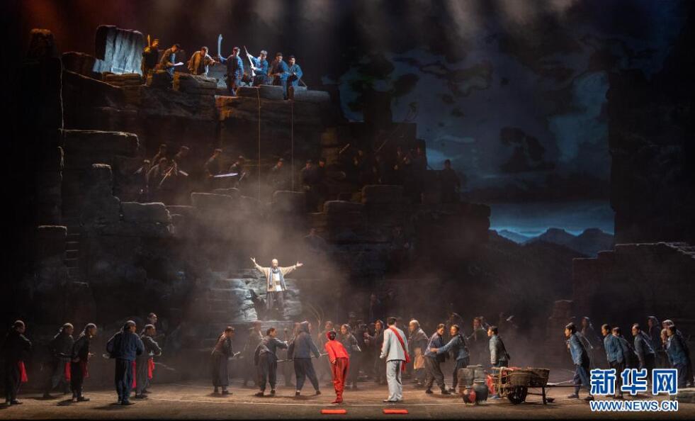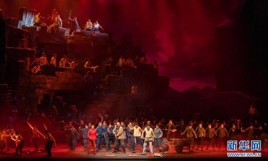 当日,由中共中央宣传部、文化和旅游部、中国文学艺术界联合会共同举办的庆祝中国共产党成立100周年优秀舞台艺术作品展演拉开帷幕,民族歌剧《沂蒙山》当晚在国家大剧院上演。新华社记者 翟健岚 摄