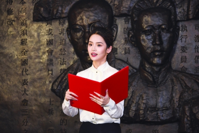 上海戏剧学院青年学生朗诵《共产党宣言》选段。 文汇报记者 邢千里 摄