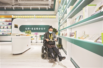 在北京市东城区,有一家以无障碍标准建设的书店——“善缘书舍”。书店面积300多平方米,整体和细节设计都考虑了残障人士的需求:书架高度分为多个层次,方便轮椅上的读者轻松取书;书架、桌椅边缘呈弧形,基于“逢棱必圆、逢角必圆、逢坎必平”的无障碍设计理念,避免残障人士、老年人和孩童不小心磕碰受伤;书桌、柜台确保容膝宽松,方便轮椅出入、摆放。