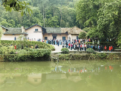 重新开放的毛泽东同志故居景色优美,游人如织。故居前的水面为南岸塘。毛泽东少时曾时常在此处游泳。宋 斌摄