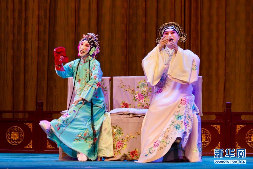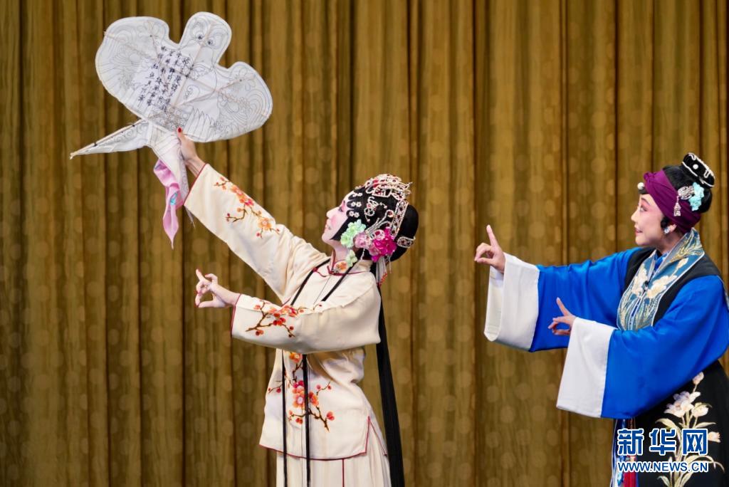 5月12日,北方昆曲剧院演员王瑾(左)和曹龙生在昆曲《风筝误》中表演。
