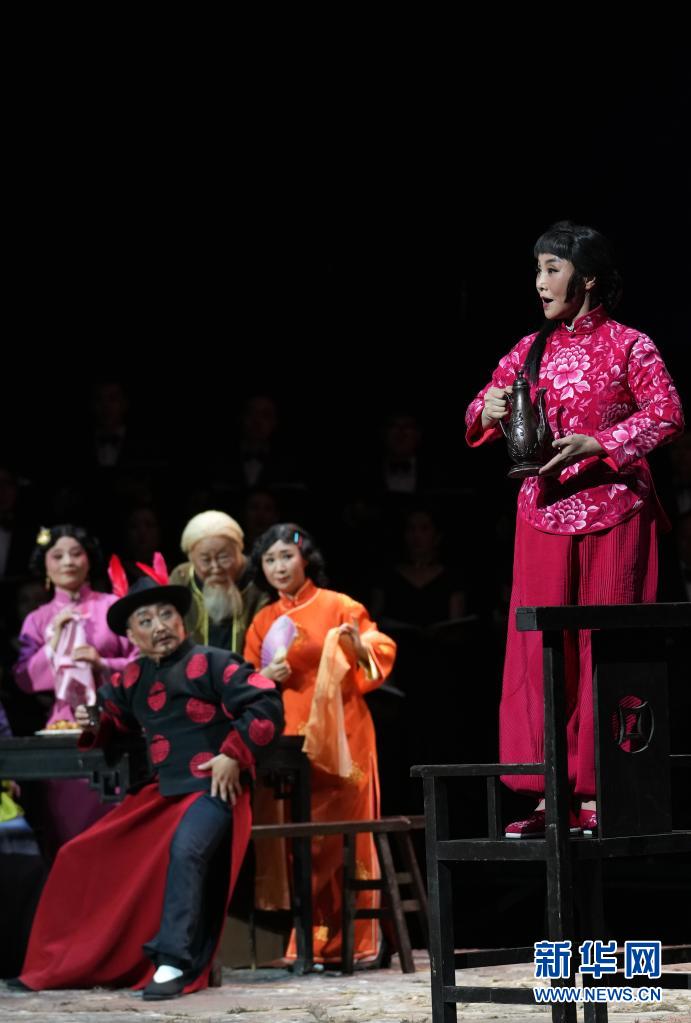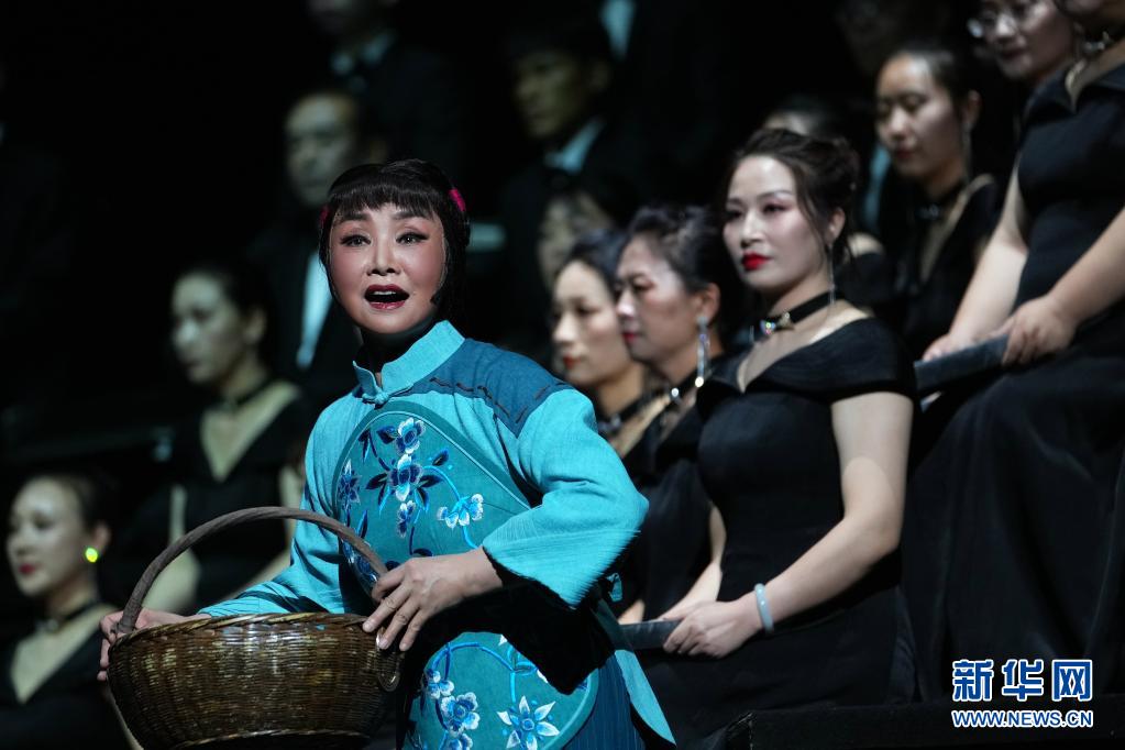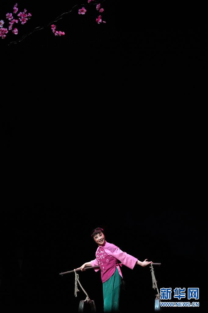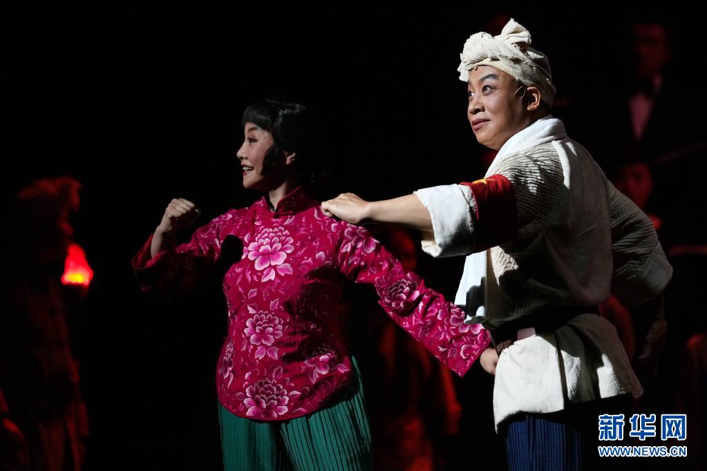 5月26日晚,在西安广电大剧院,饰演李香香的柳萍(右前)为观众表演秦腔现代戏《王贵与李香香》。