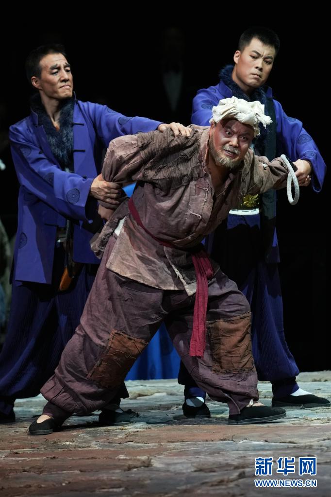 5月26日晚,在西安广电大剧院,饰演王贵的李小雄(右)为观众表演秦腔现代戏《王贵与李香香》。