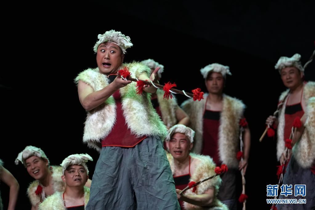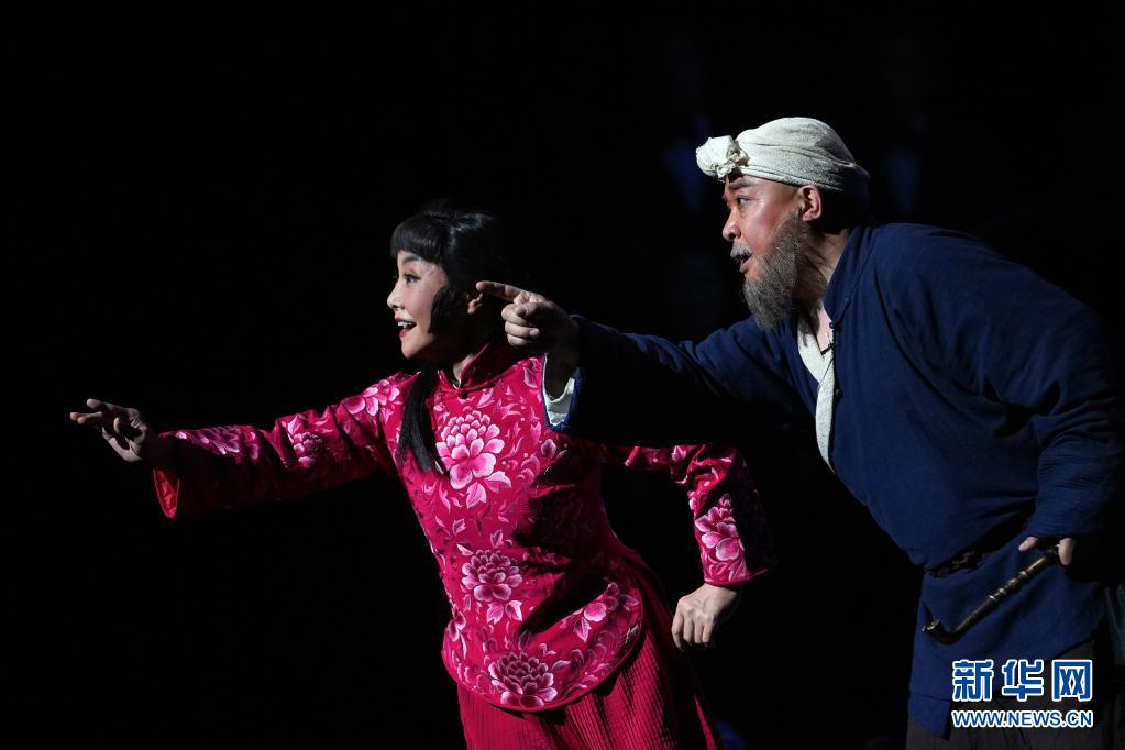 5月26日晚,在西安广电大剧院,演员为观众表演秦腔现代戏《王贵与李香香》。
