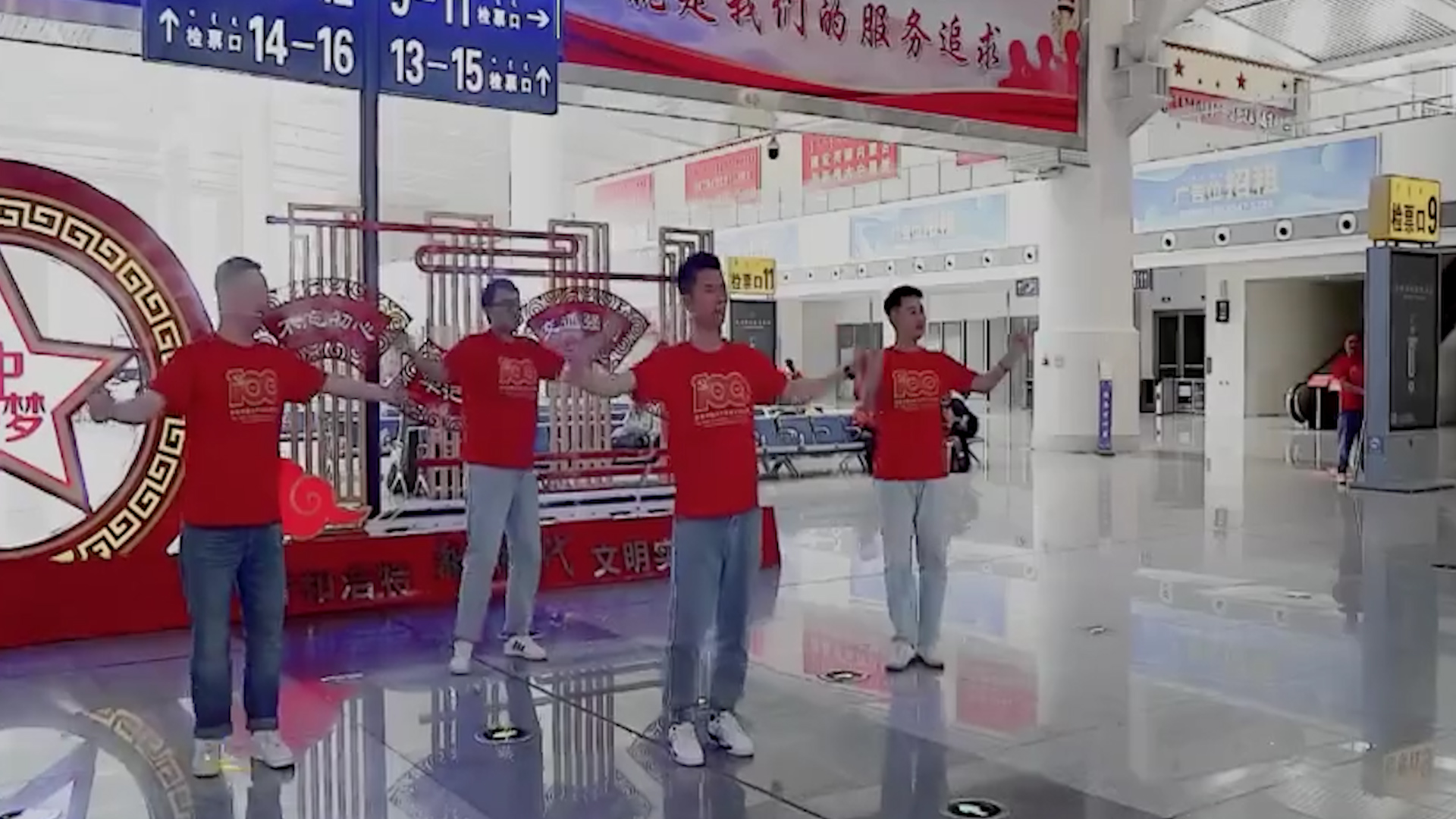 结束参观,在互动厅一角的桌边,几位年轻的观众正埋头写下自己的留言:“青春耀百年,永远跟党走”“年年岁岁有今朝,祖国的将来会更好”。