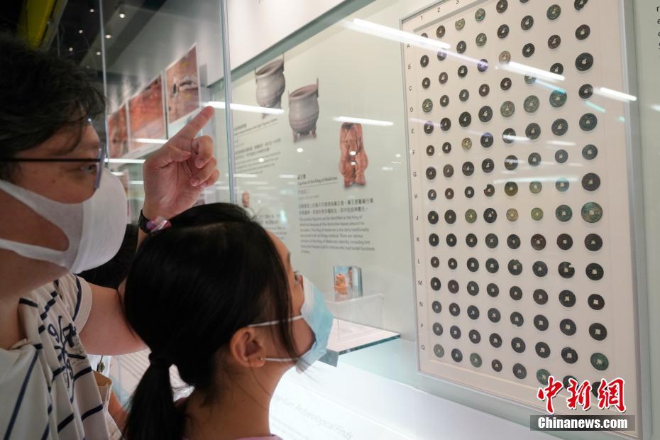 8月29日,众多香港市民正在港铁宋皇台站内参观“圣山遗粹—宋皇台出土宋元文物展”。该展览是香港首个在车站内设置的文物展览,400多件展品由香港古物古迹办事处在出土的70多万件宋元陶瓷碎片、宋代铜钱等文物中精选而来。2012年至2015年间,配合宋皇台站建设工程,港铁公司委讬考古专家于工程范围进行考古工作,结果出土大量宋元时期的考古遗存,包括宋代石构水井、70多万片宋元陶瓷碎片等。图为观众欣赏古钱币。 中新社记者 张炜 摄