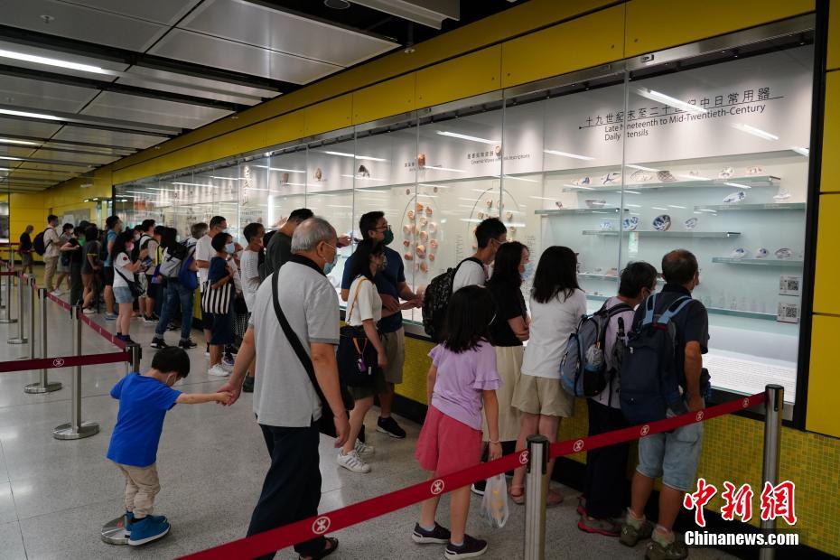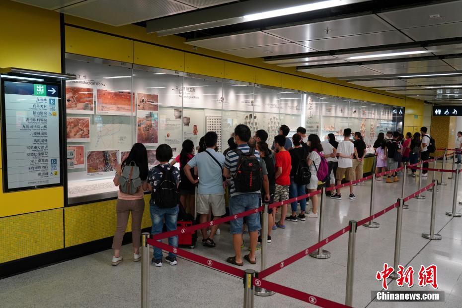 8月29日,众多香港市民正在港铁宋皇台站内参观“圣山遗粹—宋皇台出土宋元文物展”。该展览是香港首个在车站内设置的文物展览,400多件展品由香港古物古迹办事处在出土的70多万件宋元陶瓷碎片、宋代铜钱等文物中精选而来。2012年至2015年间,配合宋皇台站建设工程,港铁公司委讬考古专家于工程范围进行考古工作,结果出土大量宋元时期的考古遗存,包括宋代石构水井、70多万片宋元陶瓷碎片等。 中新社记者 张炜 摄