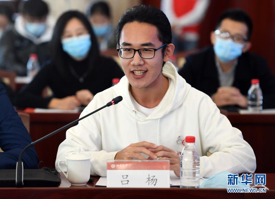 12月5日,北京冬奥会赛会志愿者申请人代表、北京大学光华管理学院2020级本科生吕杨在活动中发言。新华社记者 任超 摄
