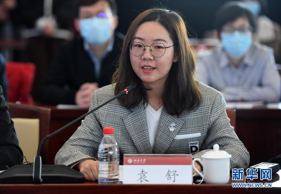12月5日,北京冬奥会赛会志愿者申请人代表、清华大学2016级本科生袁舒在活动中发言。新华社记者 任超 摄