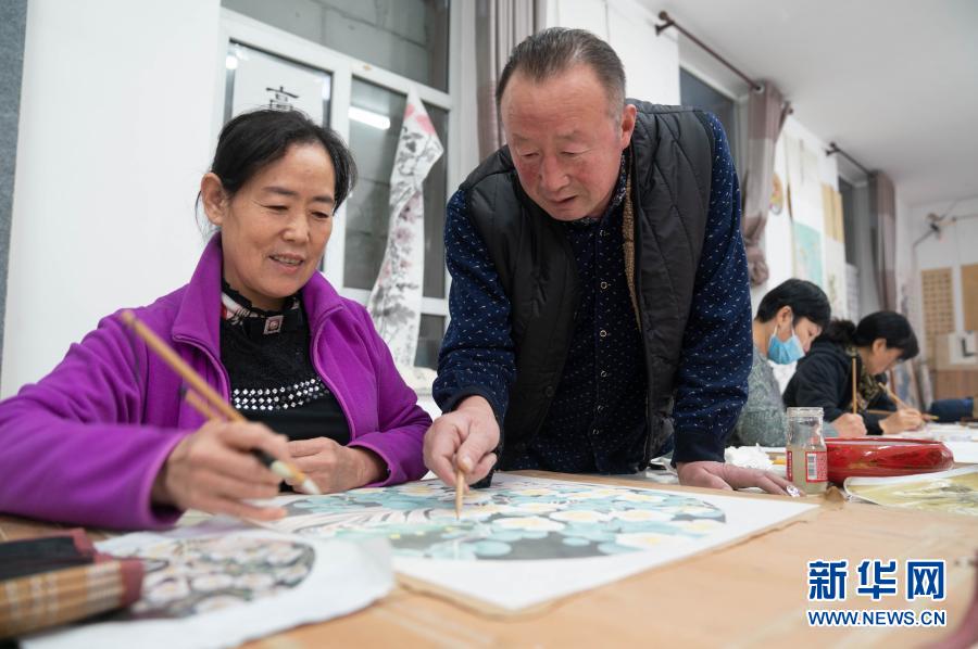 12月11日,黄骅市骅东街道老年活动中心学员在老师指导下学习工笔画。