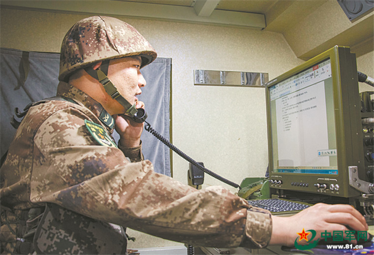 某旅直招士官窦嘉伟正在进行通信训练。肖 磊摄