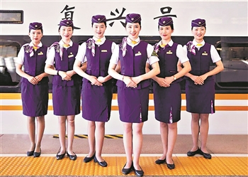 “2005年1月,当我第一次穿上铁路制服时,觉得既新奇又自豪,同时感觉肩上的担子重了,自己的言行举止代表了铁路的形象。”回忆起第一次穿制服的心情,高铁动一车队列车长仲召爽说。不过相比以前,她更喜欢现在这套紫色套裙制服,她觉得大气,时尚,与国际接轨,“就像我们的4S服务法一样”。