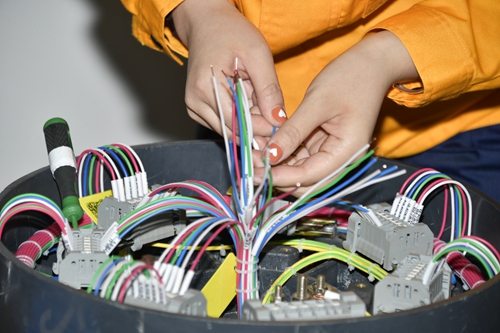 在实践过程中,她们积极参与“五小”活动并形成了多项成果:研究并投入使用的电缆成端柜,提高了电缆屏蔽接地性能和安装工艺;用刀片自制出了适合女工小手使用的剥线刀,使剥线作业的功效提高了一倍;用纸盒为打号机制作套管支架,大大降低了手工转动套管带来的人工损耗。